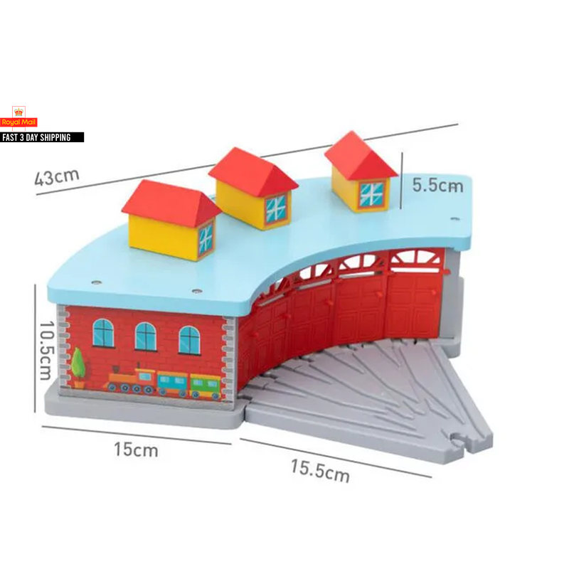 Wooden Train Shed House with 5-Way Switch Track - Compatible with Wooden Train Tracks, Beech Wood Building for Kids Ages 3+