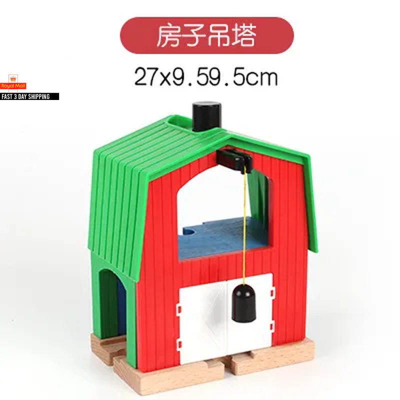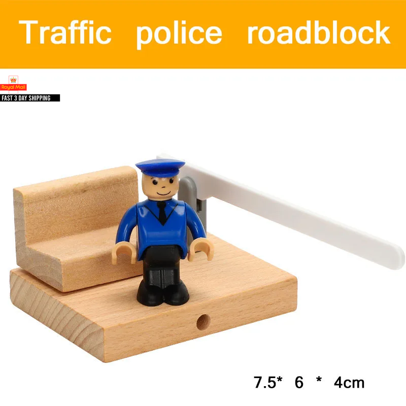 Wooden Train Tracks Accessories Train Set Piece of Police Station Compatible with All Railroad Track Collection Train Toys Expansion Pack for Kids A