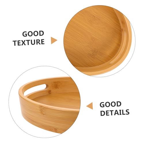 Round Serving Acacia Wooden Tray with Handles for Serving Beverages Tea Plate D