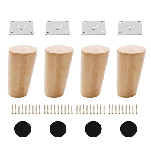 WATAOW 8inch Round Solid Wood Furniture Legs, 4-pack Wooden Replacement Legs With Mounting Plate And Screws For Sofas Nightstands TV Stands Beds Dressers Cabinets(Oblique Cone,10cm/3.9")