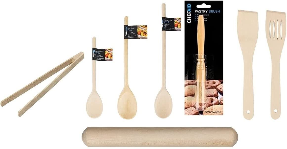 Chef Aid 8Pcs Wooden Utensil Set for Cooking & Baking Eco-Friendly Kitchen Tool