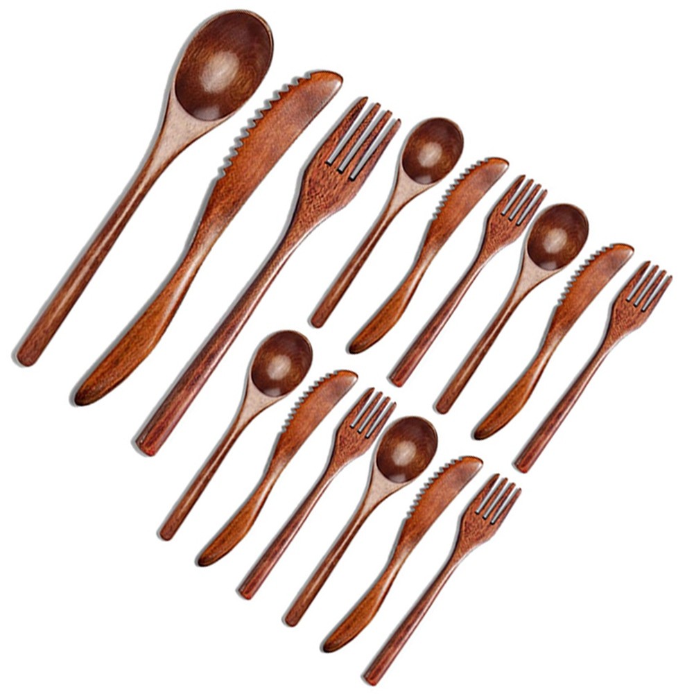 15 Pcs Wooden Spoon Fork Cutlery Set Wooden Dinner Utensil Set Kitchen2812