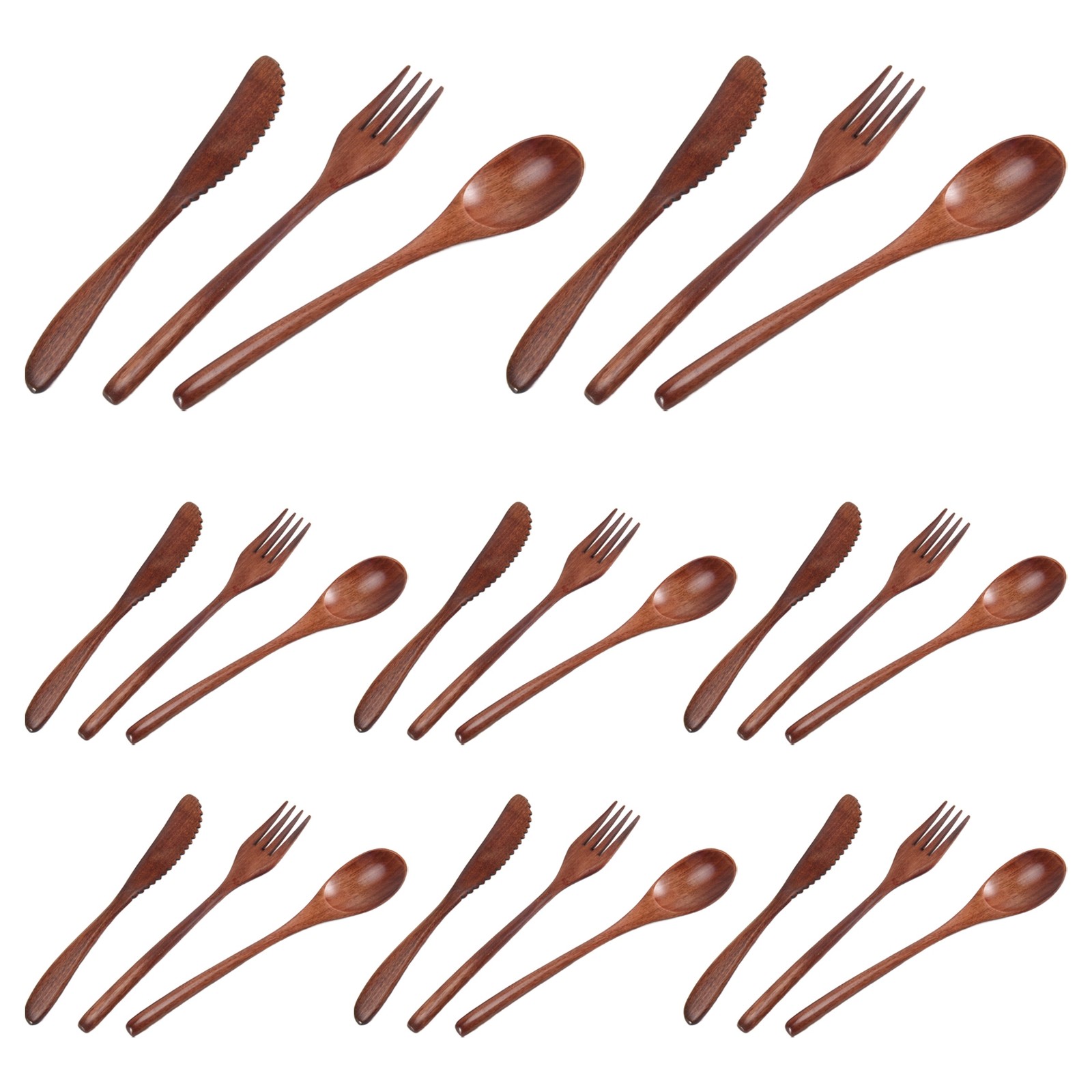 15 Pcs Wooden Spoon Fork Cutlery Set Wooden Dinner Utensil Set Kitchen4072
