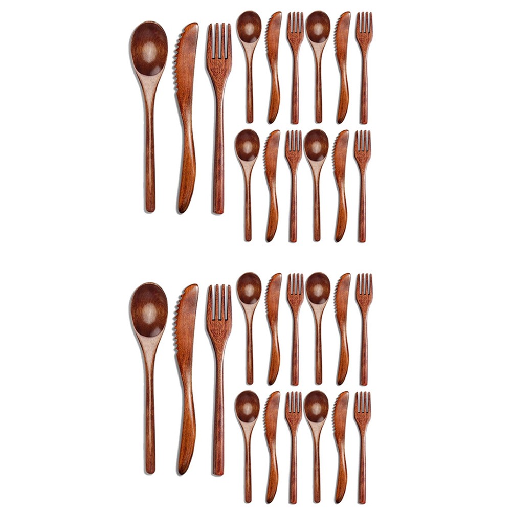 30 Pcs Wooden Spoon Fork Cutlery Set Wooden Dinner Utensil Set Kitchen3384