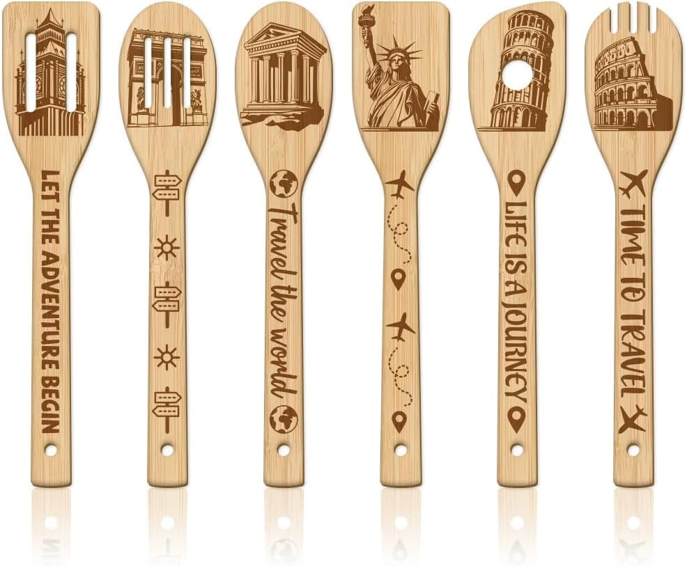GLOBLELAND 6Pcs Famous Buildings Wooden Spoons Utensil Set Travel Bamboo Carving