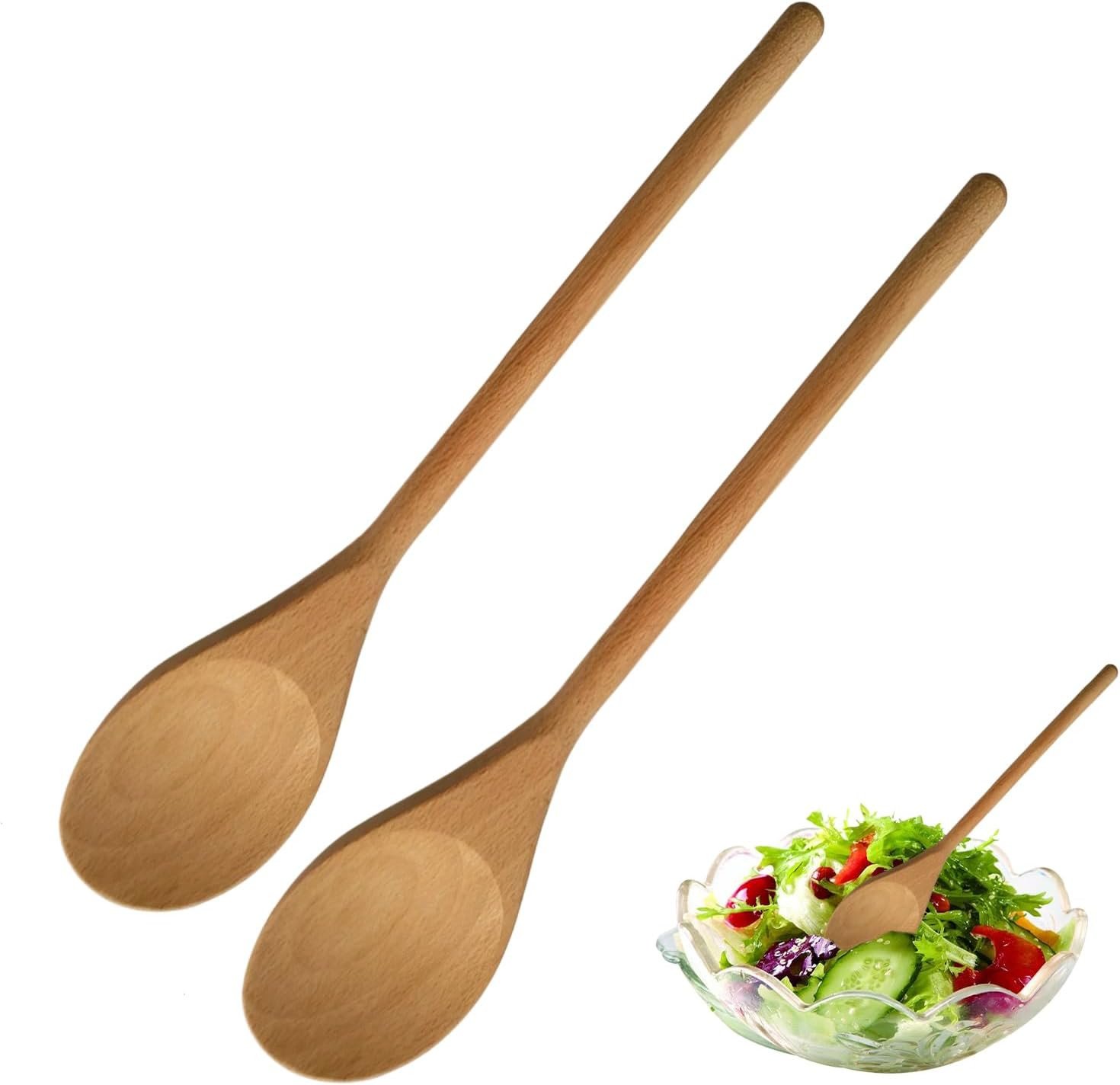 2 Pcs Wooden Spoons for Cooking, Long Handle Wooden Utensil Set, Natural Wood Lo