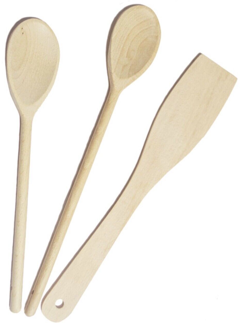 3 x Wooden Utensil Set Spoons & Spatula Kitchen Baking Cooking Solid Wood Spoon