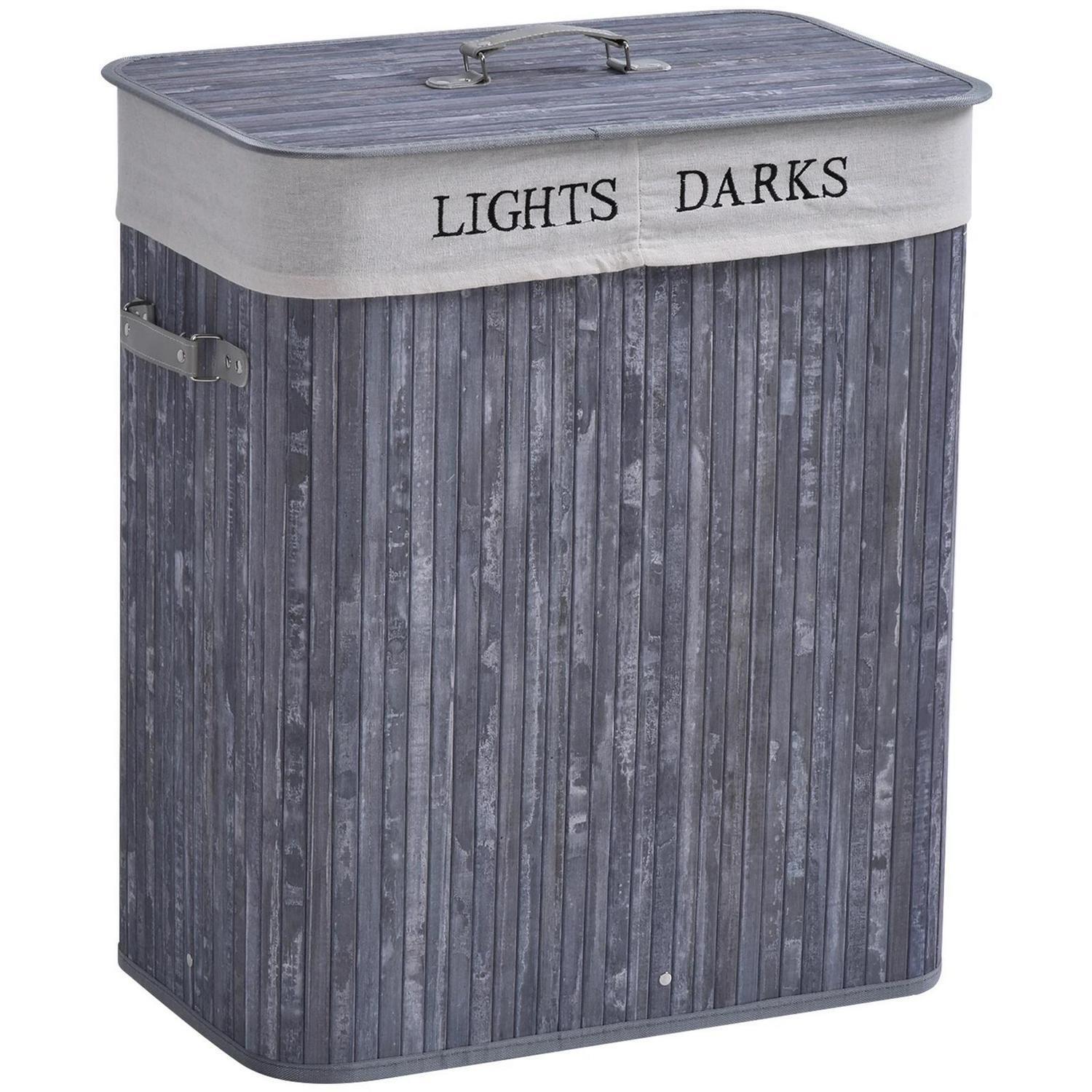 100L Laundry Hamper Basket Wooden Washing Clothes 2 Sections Bin Storage Grey