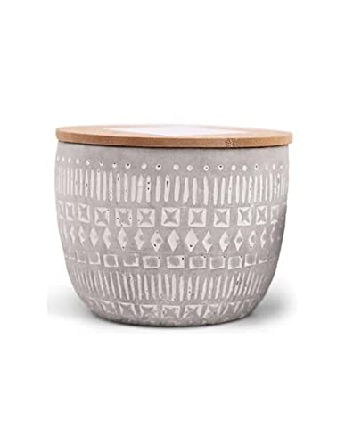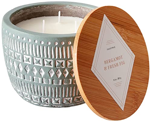 Paddywax Scented Candles Desert-Inspired Sonora Range Candle in Reusable Etched Concrete Pot with Wooden Lid, 283g - 3-Wick, Bergamot & Fresh Fig