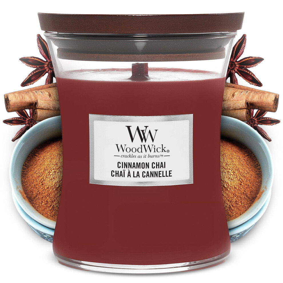 WoodWick Medium Hourglass Scented Candle | Cinnamon Chai | with Crackling Wick | Burn Time: Up to 60 Hours