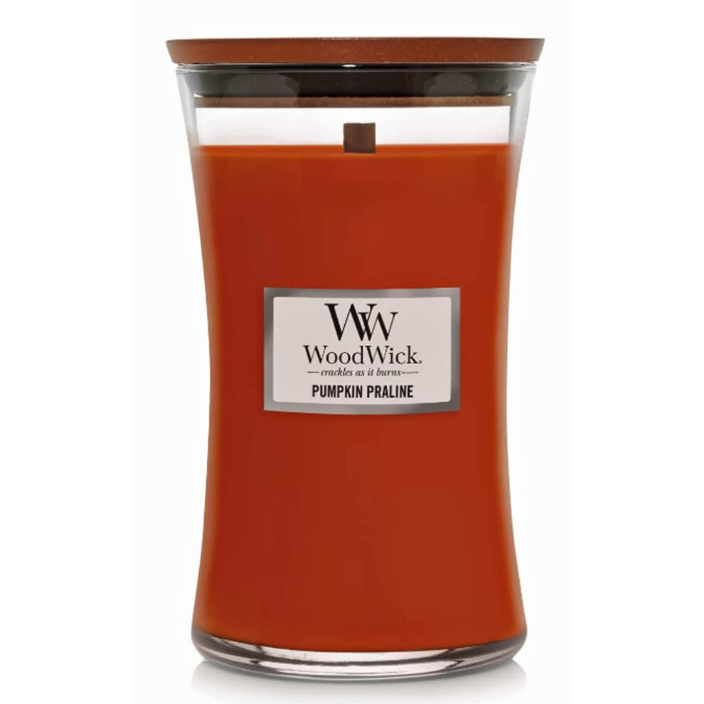 WoodWick Large Hourglass Candle Pumpkin Praline - Premium Soy Blend Wax Pluswick Innovation Wood Wick Made in USA