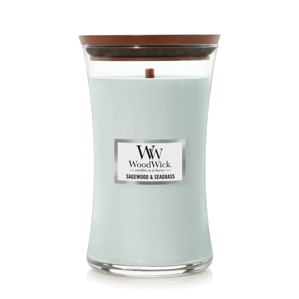 WoodWick Large Hourglass Candle Sagewood/Seagrass - Premium Soy Blend Wax Pluswick Innovation Wood Wick Made in USA