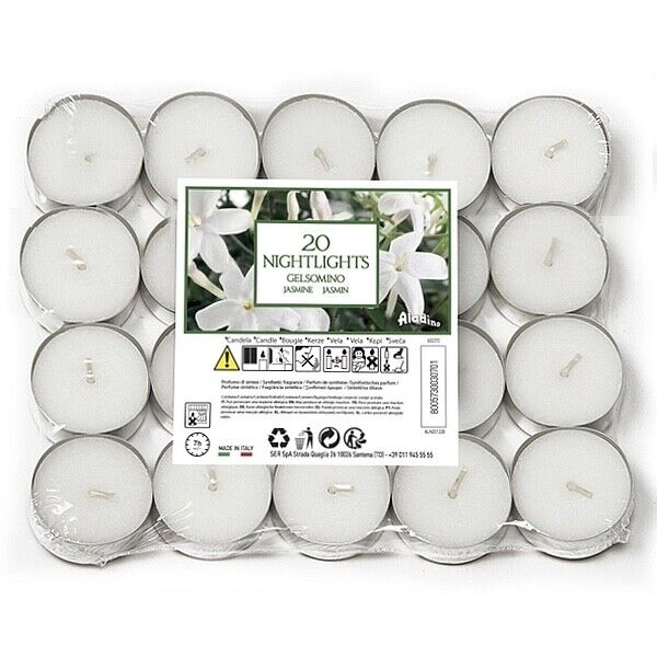 20 Pcs Aladino Nightlights Tea Light Candle 7 HOUR LONG BURN Jasmine Fragrance