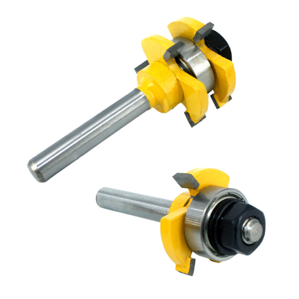 2Pcs 8Mm Shank Joint Assembly Router Bit Set Tongue & Groove T-Slot Milling Cutter for Woodwork Cutting Tools