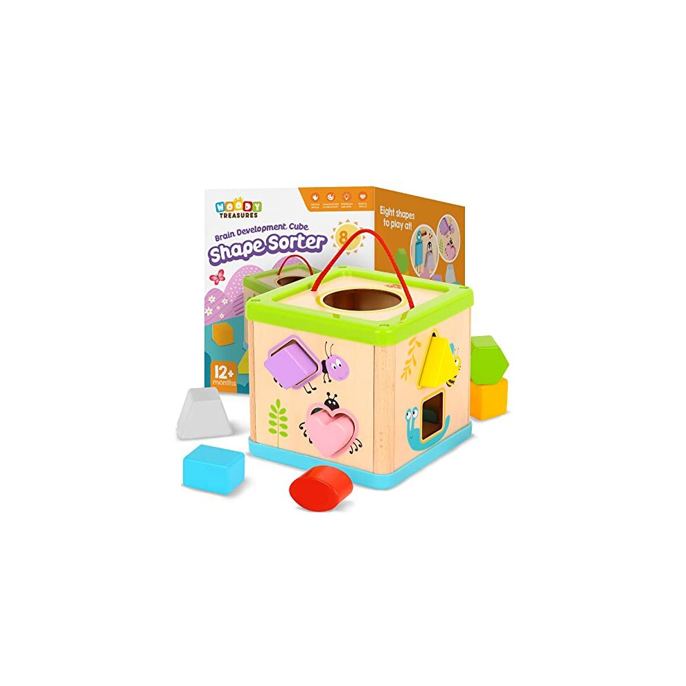 Woody Treasures Wooden Toys Shape Sorter for 1 Year Old - Baby Puzzles - Learning Centre for Colour and Shape Recognition - Quality Educational Toddler Toys for Boys and Girls