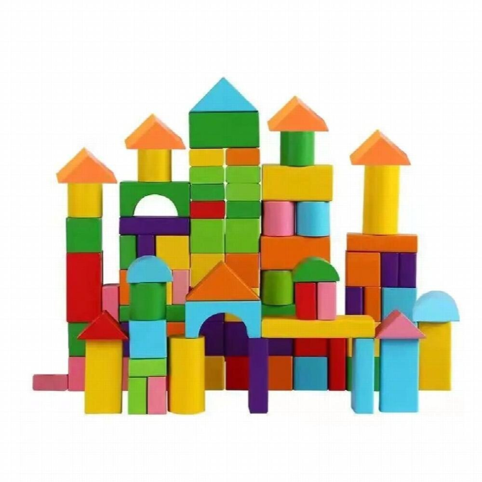 40pcs Large Grain Colorful Wooden Solid Building Block Toys Assembled Child Puzzle Woody Block Brick Creative Interactive Games