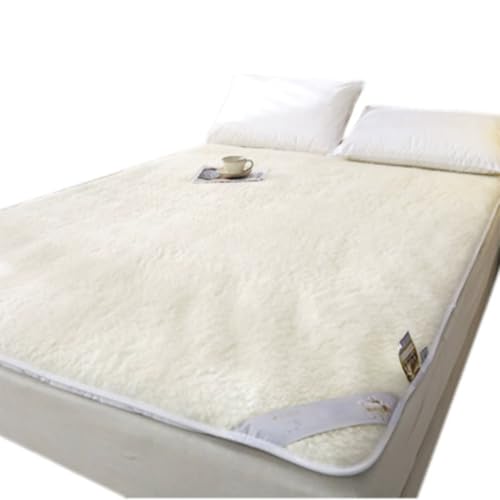 Jidanmian Wool Fleece Fitted Mattress Cover Pad,Winter Wool Bed Topper with Straps, Soft Foldable Deep Sleep Topper for Twin/Full/Queen/King,1 pieces(90x200cm)