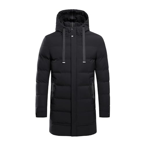 Mens Parka Winter Jackets - Solid Color Pocket Hooded Mid Length Wool In Asian Sizes (Black, XXXXXL)