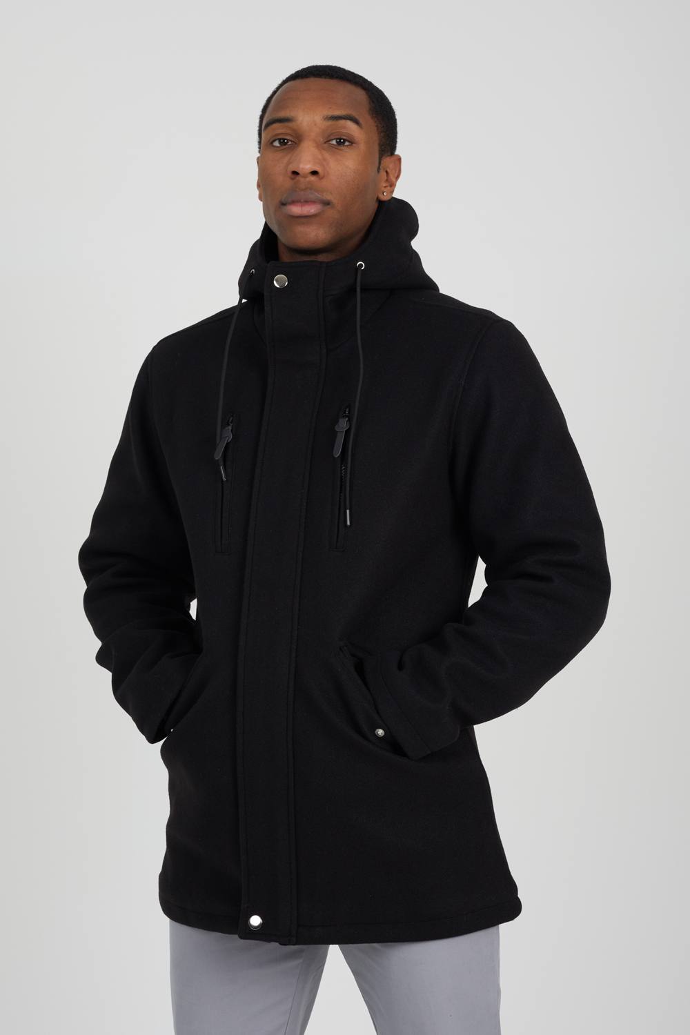 Brave Soul Men Faux Wool Hooded Parka Jacket in Black | Size: Small