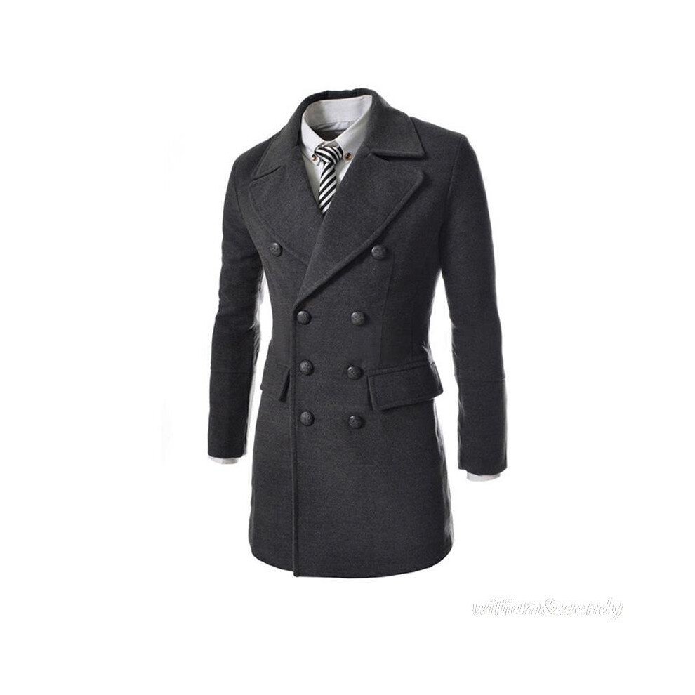 Men Slim Wool Blend Peacoat Autumn Winter Warm Double Breasted Jacket Cashmere Down Coat Male Classic Black Long Overcoat
