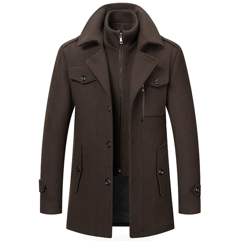 (coffee, XXL) Mens Wool Coats Winter Padded Trench Coat for Casual Business Outwear Thick Wool Blend Peacoat with Removable Inner Collar