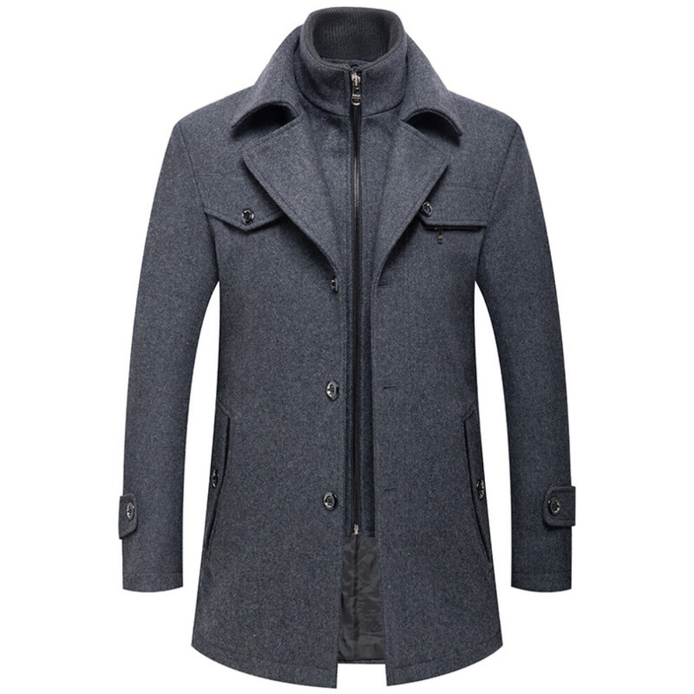 (gray, 4XL) Mens Wool Coats Winter Padded Trench Coat for Casual Business Outwear Thick Wool Blend Peacoat with Removable Inner Collar
