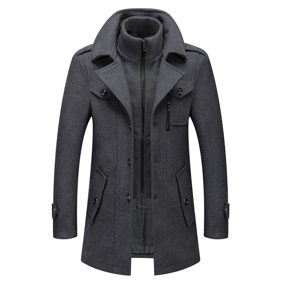 (gray, XL) Mens Wool Coats Winter Padded Trench Coat for Casual Business Outwear Thick Wool Blend Peacoat with Removable Inner Collar
