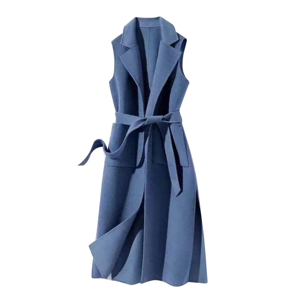iOPQO Women's Wool Peacoat, Long Belted Trench Coat â Warm Winter Coat for Women, Blue XL