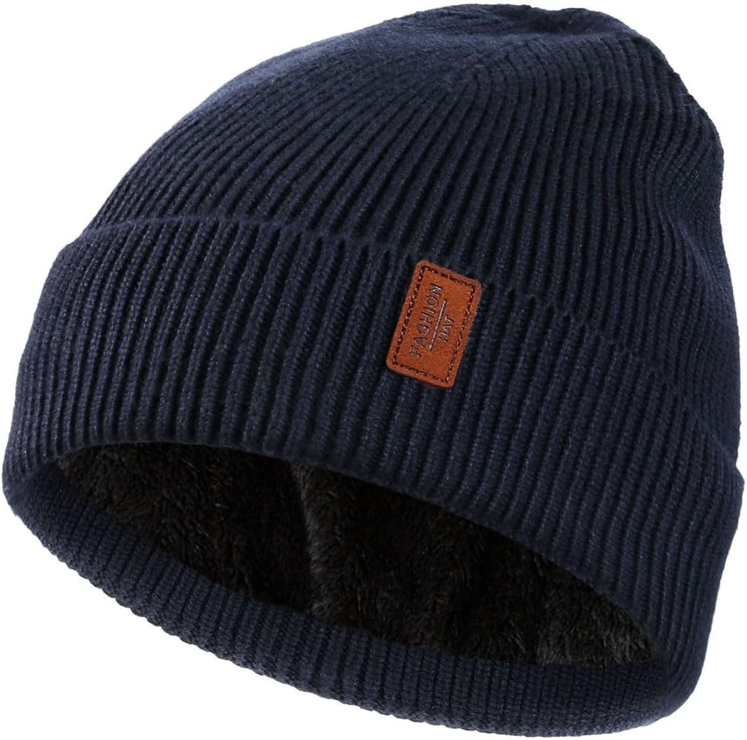 FCHUI Beanie Hat for Men - Winter Knitted Beanie Hat Soft Cuffed Wooly Beanie Classic Winter Hats with Stretchy Fleece Lined (Dark Blue)