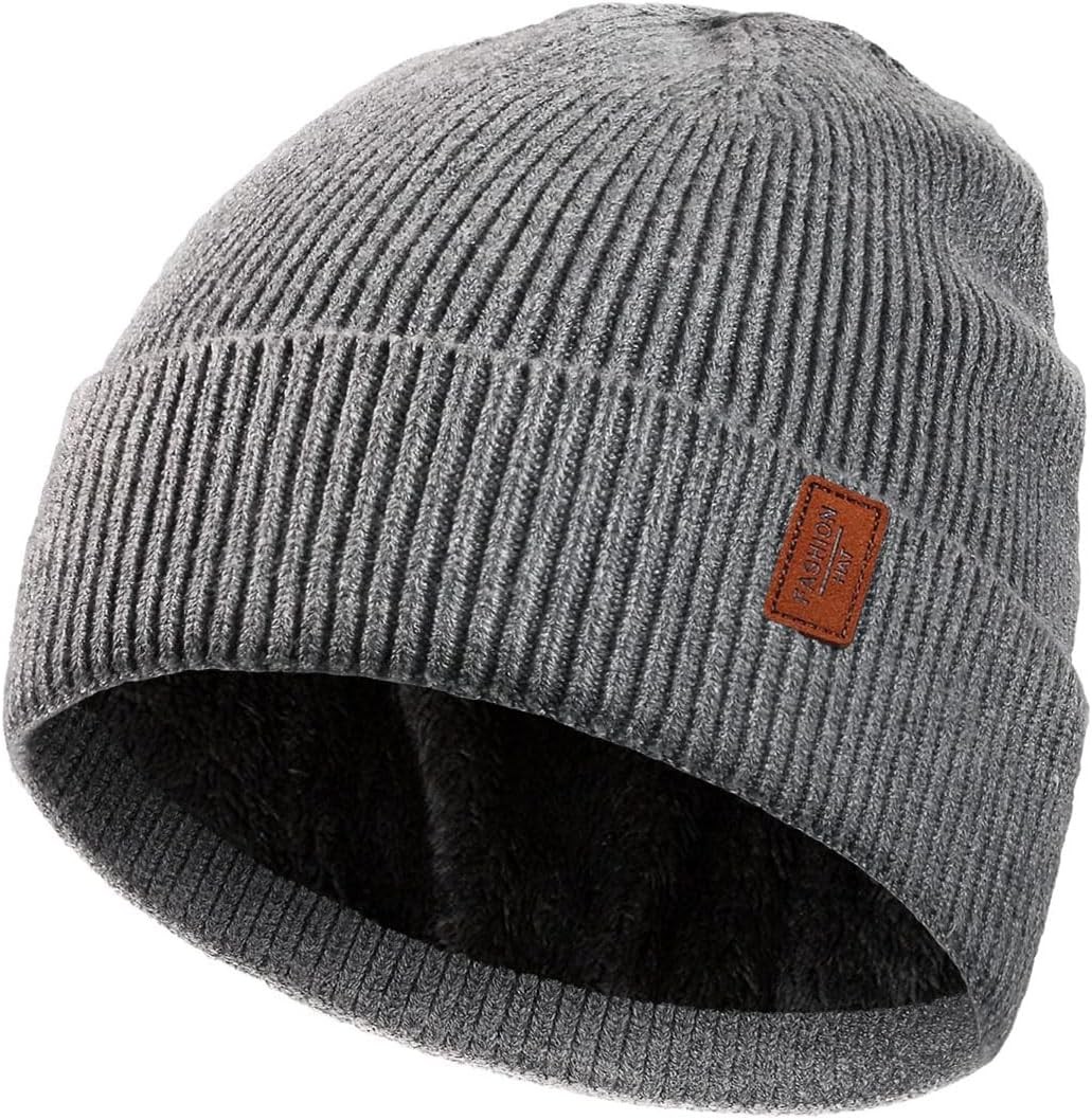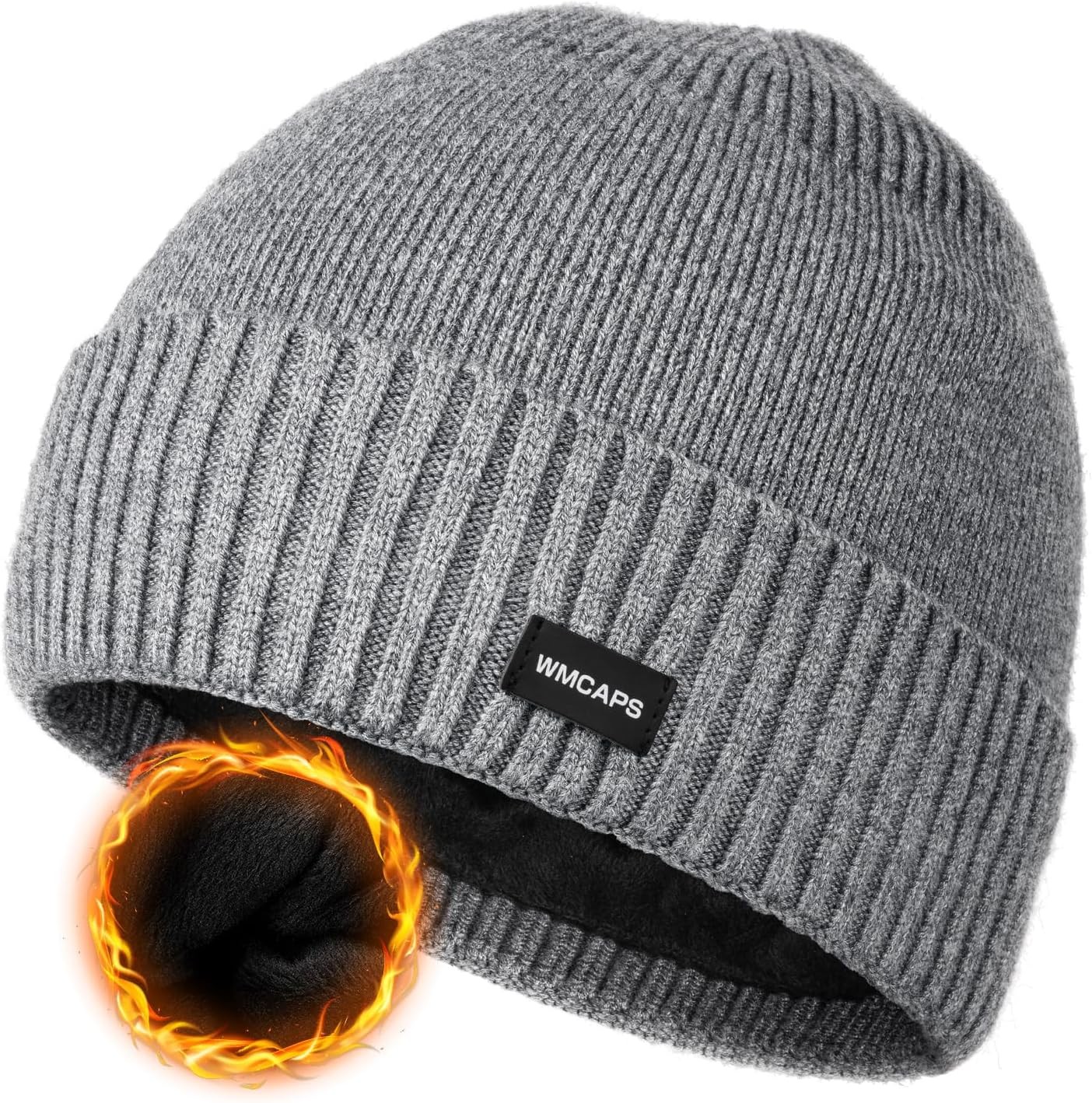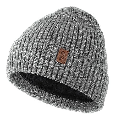 Wmcaps Beanie for Men, Stretchy Soft Cuffed Wooly Beanie with Thick Warm Lining, Unisex Classic Winter Hat, Gifts for Women/Men/Her/Him/Dad (Grey)