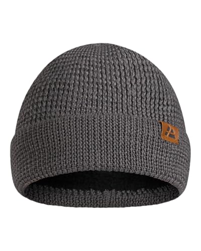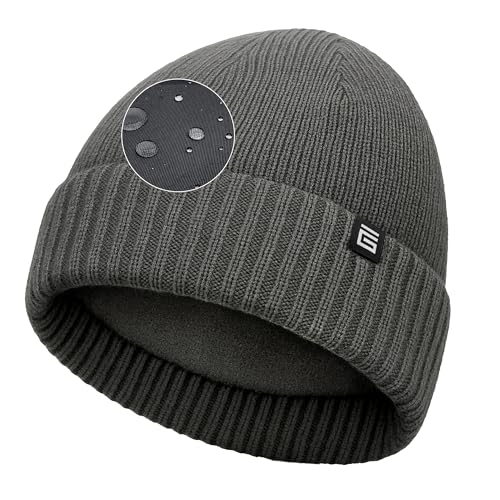 ACUSHLA Waterproof Windproof Cuff Beanie Winter Hat Stretchy Soft Cuffed Wooly Beanie with Thermal Thick Fleece Lining, Gifts for Men/Women/Her/Him/Dad, Dark Grey