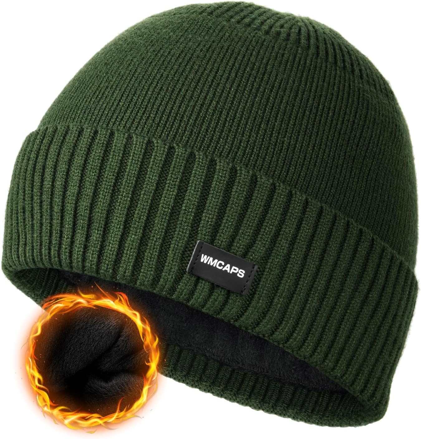 Wmcaps Beanie for Men, Stretchy Soft Cuffed Wooly Beanie with Thick Warm Lining, Unisex Classic Winter Hat, Gifts for Women/Men/Her/Him/Dad (Army Green)
