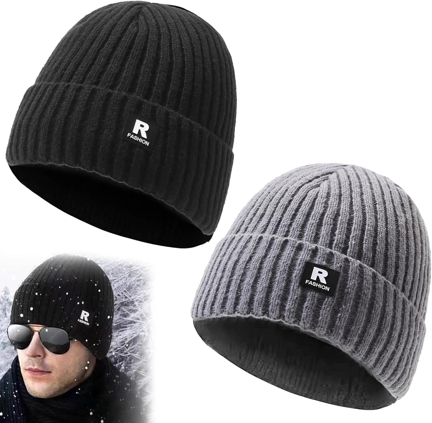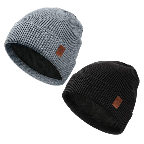 2 Pcs Beanie Hat Men, Winter Hats for Men, Winter Thermal Beanie, Unisex Wooly