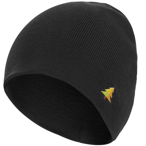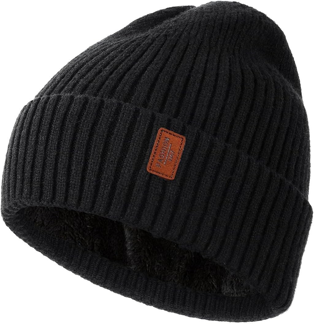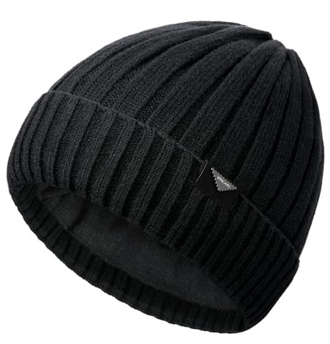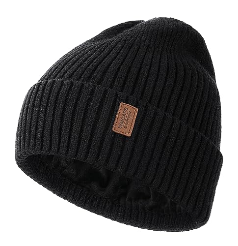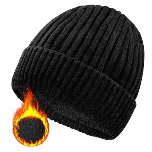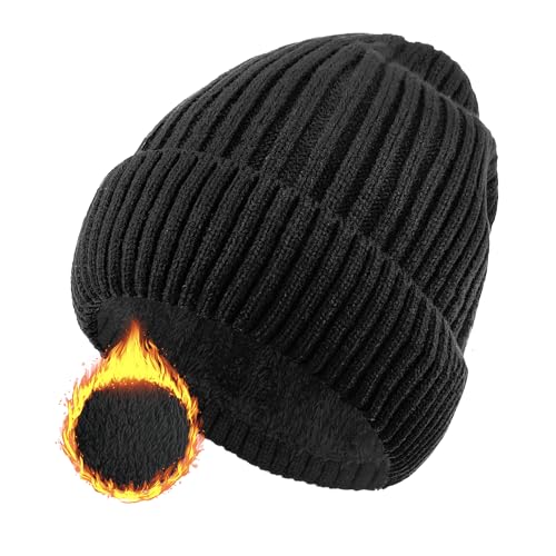 Keains Unisex Wooly Hat,Thermal Winter Hats,Warm Fleece Lining Hats, Knit Beanie for Men and Women,Gifts for Men Women Dad Black