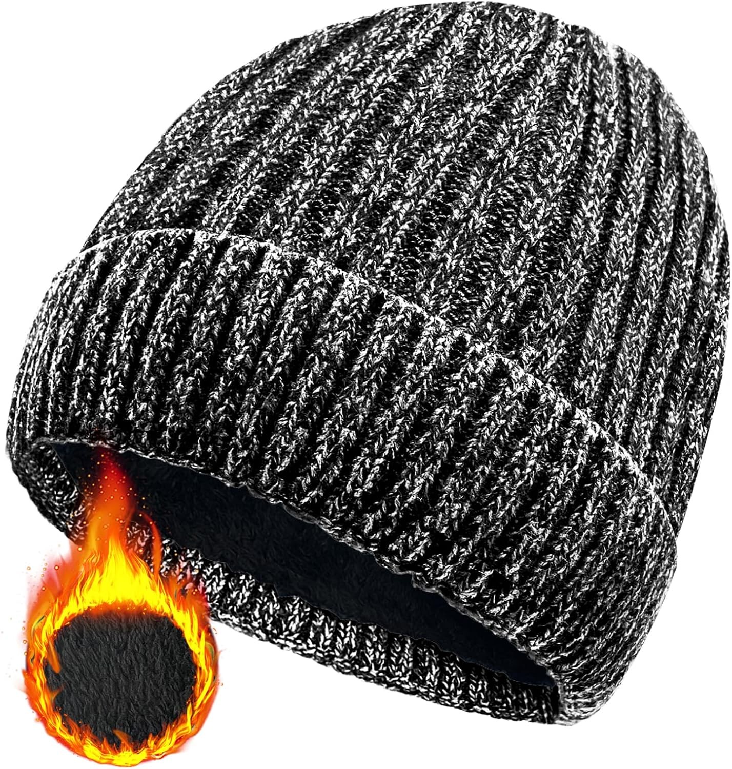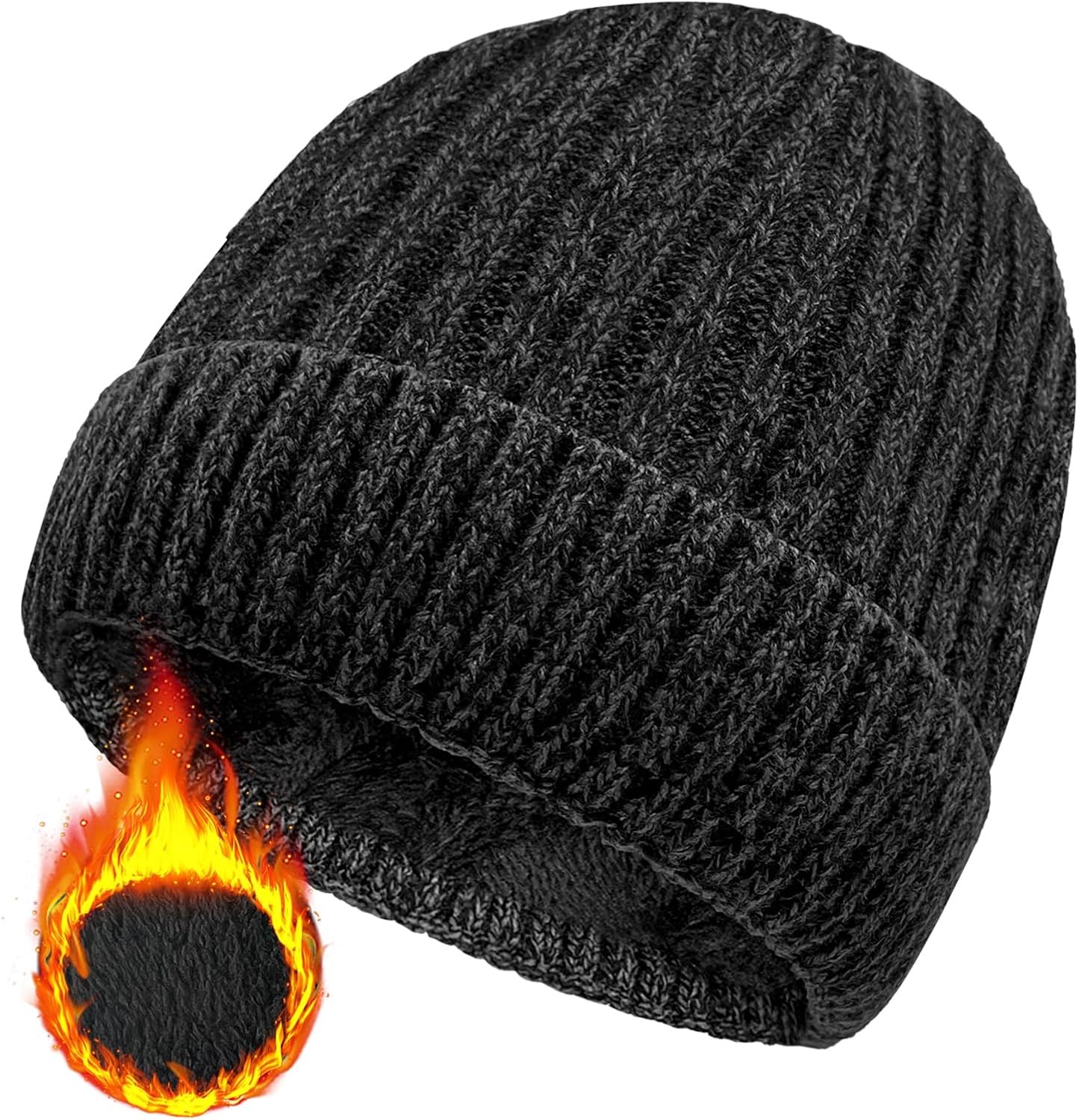 Wmcaps Beanie for Men, Unisex Classic Knit Beanie Winter Hat Stretchy Soft Cuffed Wooly Beanies with Thermal Thick Fleece Lining, Gifts for Men/Women/Her/Him/Dad(Dark Grey+Black)