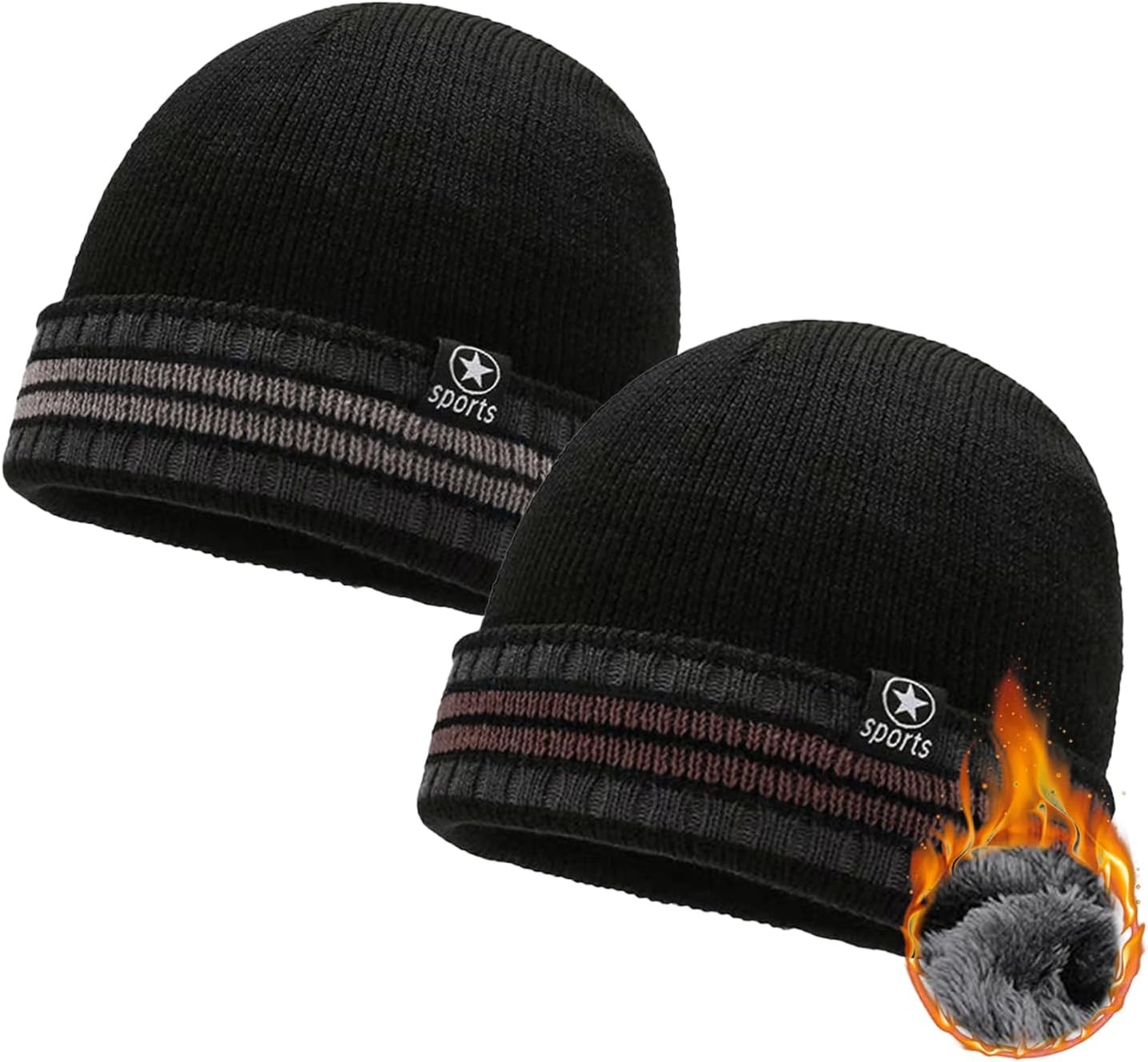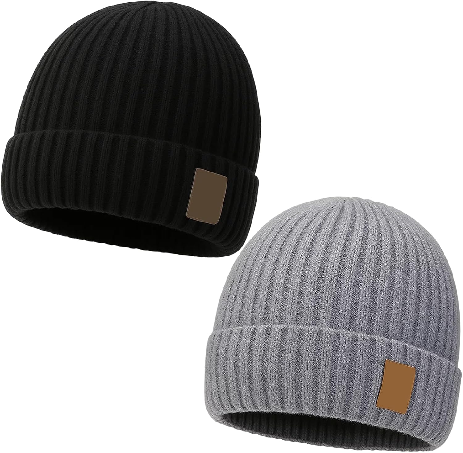 EOAMGO 2 Packs Beanie Hat Men, Winter Hats Wooly Hat Warm Thermal Hat for Men, Stretchy Soft Comfortable Daily Cuffed Hats Outdoor Gifts for Men Women