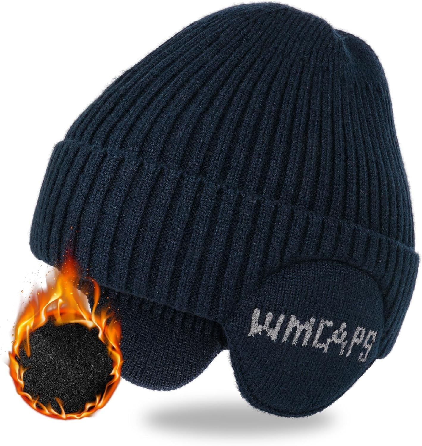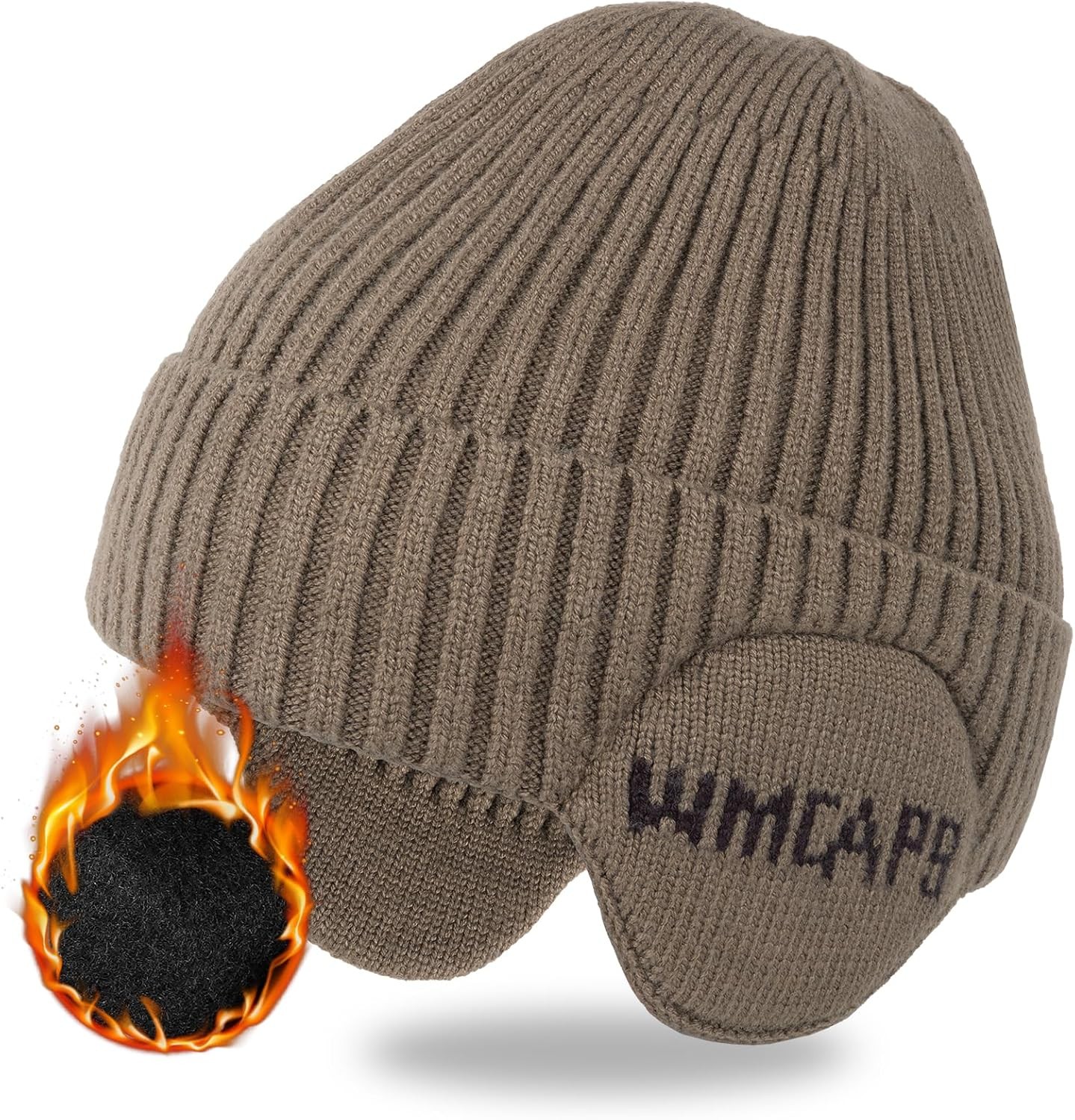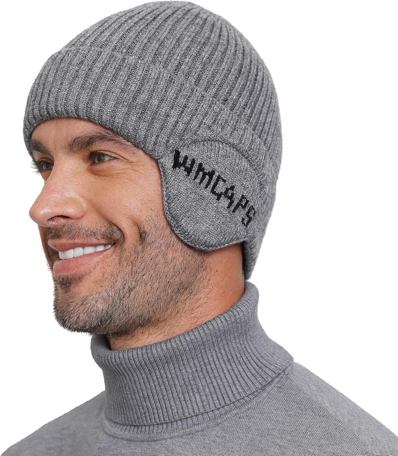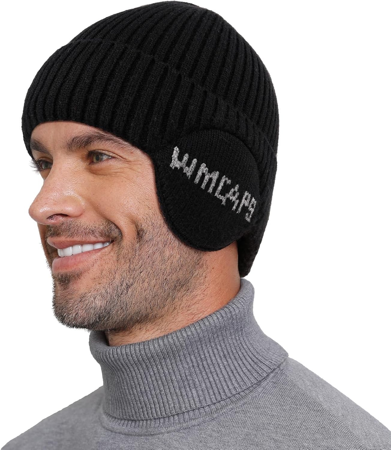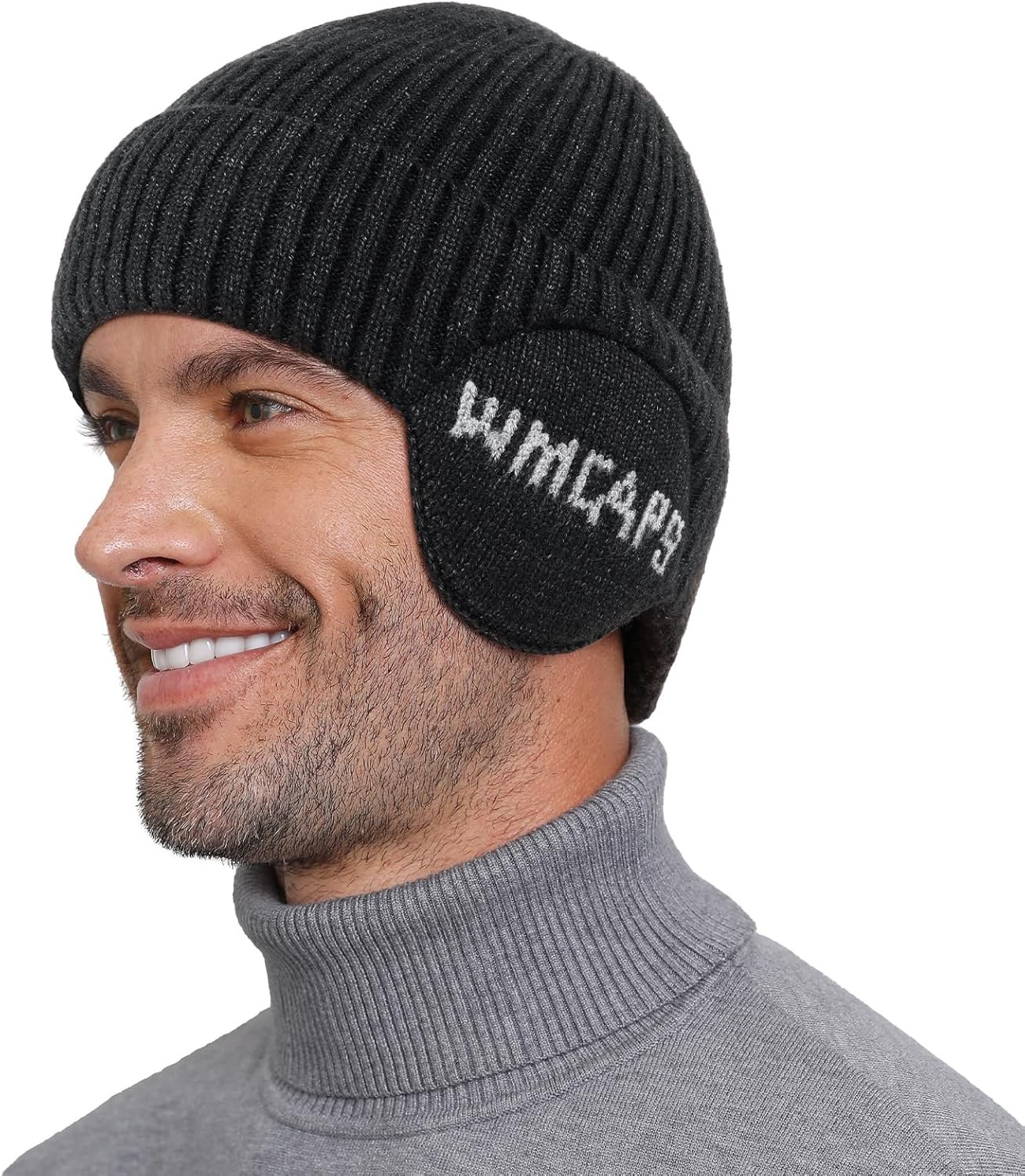 Wmcaps Knit Beanie for Men with Earflaps, Fleece Lined Wooly Hat for Men Women,