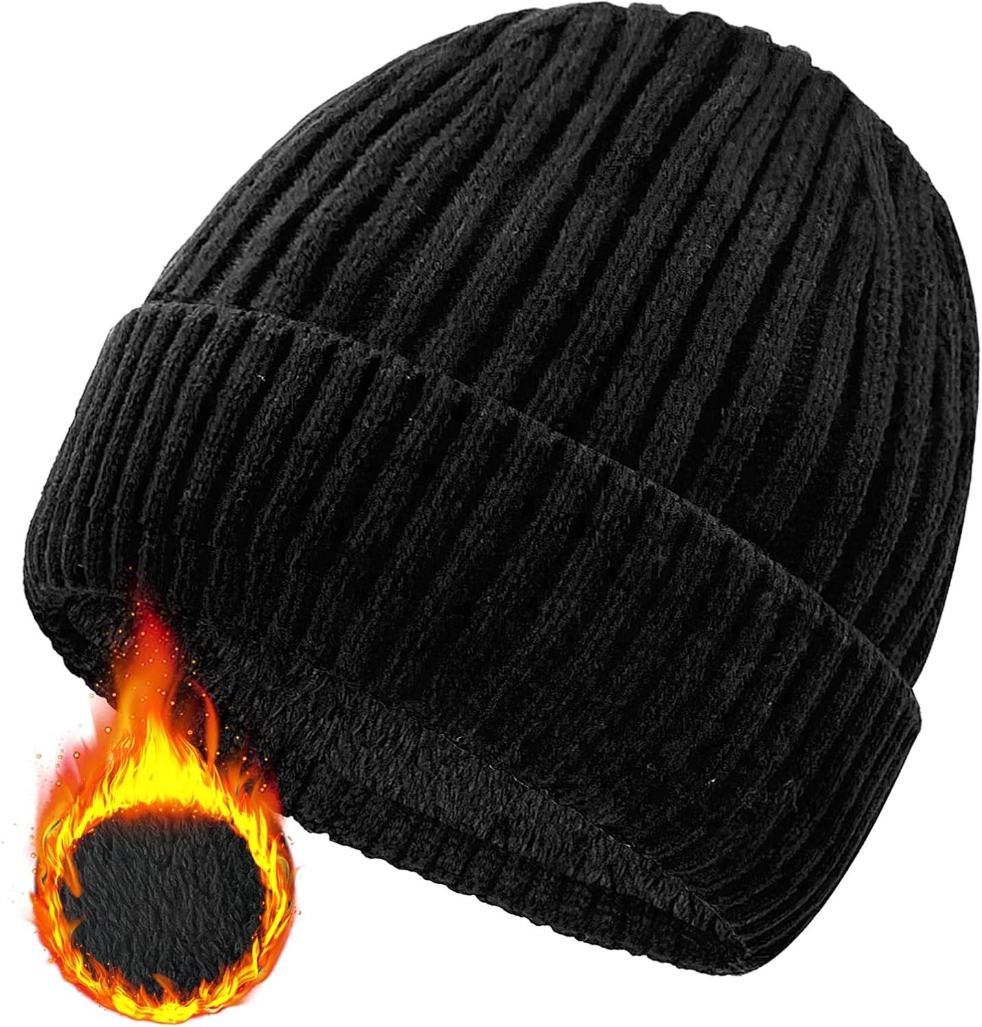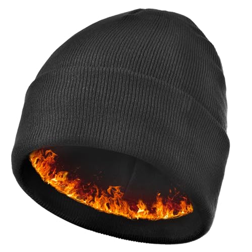 ehsbuy Beanie Hat Men Fleece Lined Stretchy Winter Hats Soft Cuffed Warm Wooly Hat Thermal Beanie Skull Cap Gifts for Men Women Black