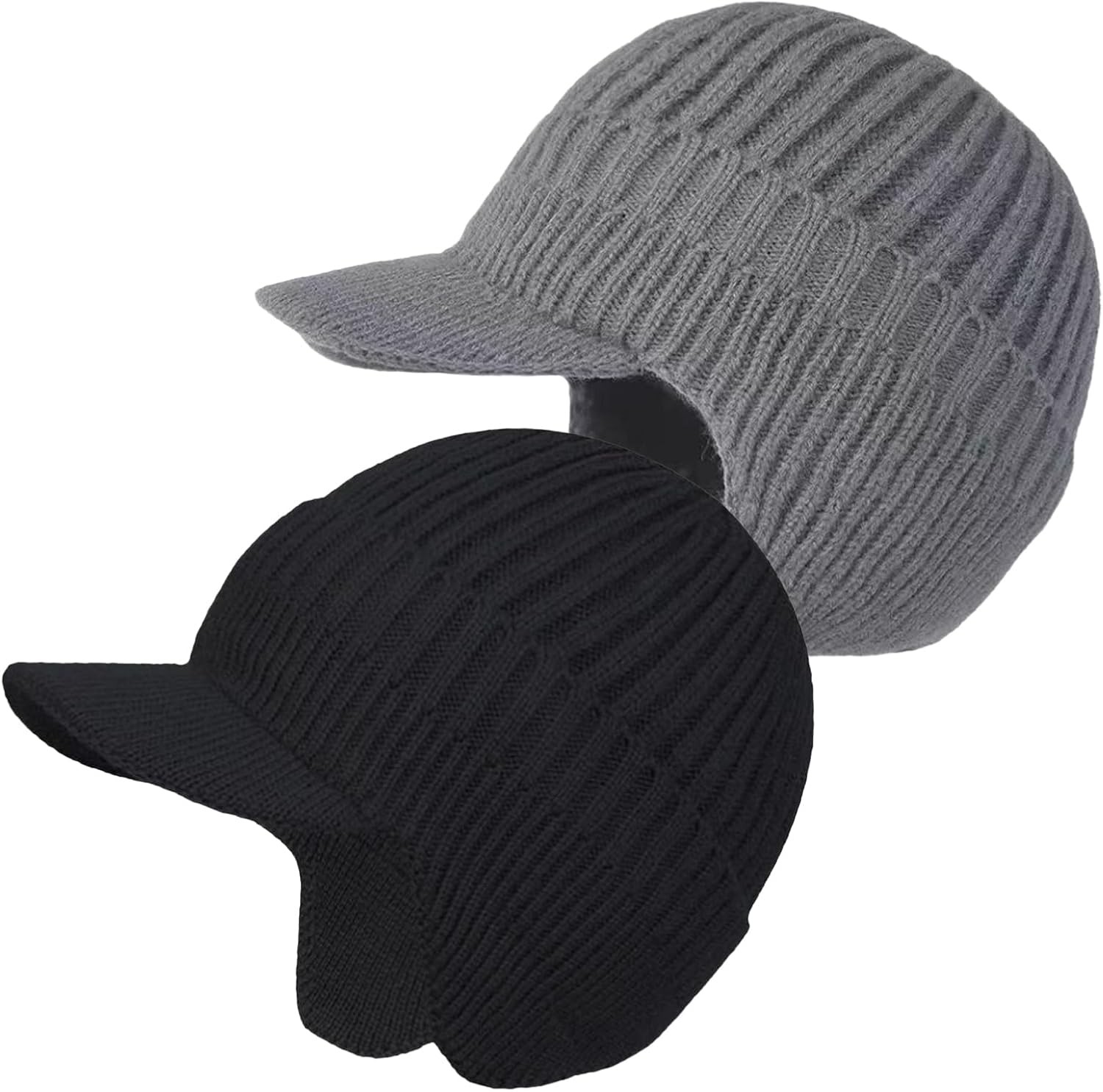 Winter Wooly Hat for Men, Mens Beanie with Brim and Ear Flaps, Windproof Fleece