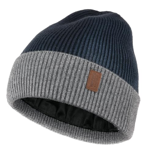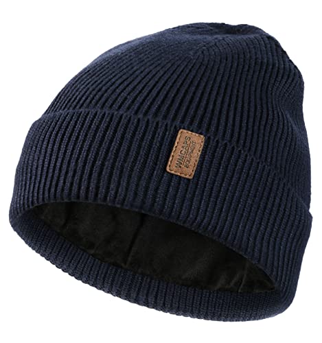 Wmcaps Beanie for Men, Stretchy Soft Cuffed Wooly Beanie with Thick Warm Lining, Unisex Classic Winter Hat, Gifts for Women/Men/Her/Him/Dad (Navy Blue)