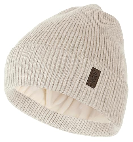 Wmcaps Beanie for Men, Stretchy Soft Cuffed Wooly Beanie with Thick Warm Lining, Unisex Classic Winter Hat, Gifts for Women/Men/Her/Him/Dad(Beige/Coffee)
