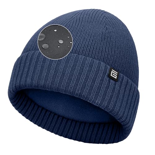 Giovici Wooly Waterproof Beanie Hat for Men and Women - Stretchy Fleece Lined Waterproof Beanie Hat - Thick Warm Mens Hats for Cold Winter Weather - Premium Beanie Hats for Men UK (Blue)