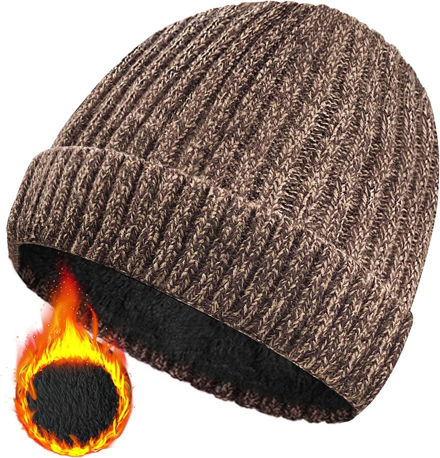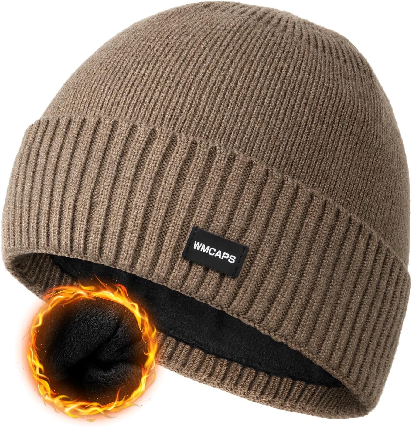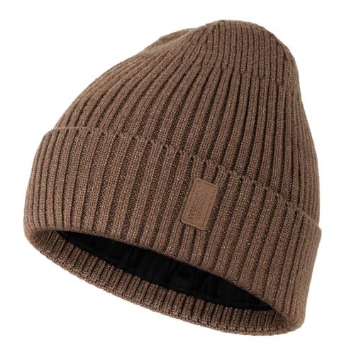 Wmcaps Beanie for Men, Stretchy Soft Cuffed Wooly Beanie with Thick Warm Lining, Unisex Classic Winter Hat, Gifts for Women/Men/Her/Him/Dad (Brown)