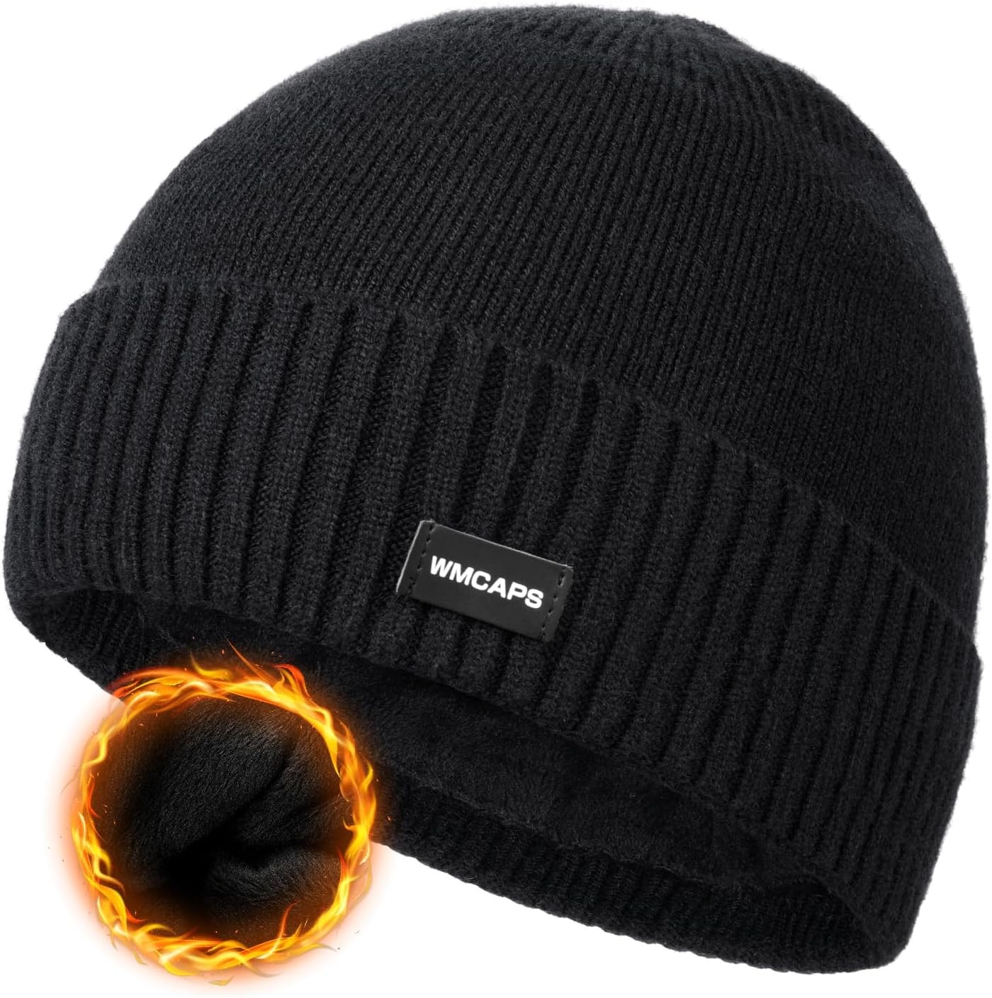 Wmcaps Winter Beanie for Men Women, Knit Hat with Thickened Fleece Lining, Unisex Classic Cuffed Warm Beanie, Elastic and Soft Wooly Hats, Heartwarming Gift, Black