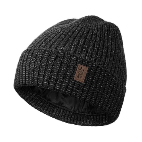 Wmcaps Beanie for Men, Stretchy Soft Cuffed Wooly Beanie with Thick Warm Lining, Unisex Classic Winter Hat, Gifts for Women/Men/Her/Him/Dad (Dark Grey)