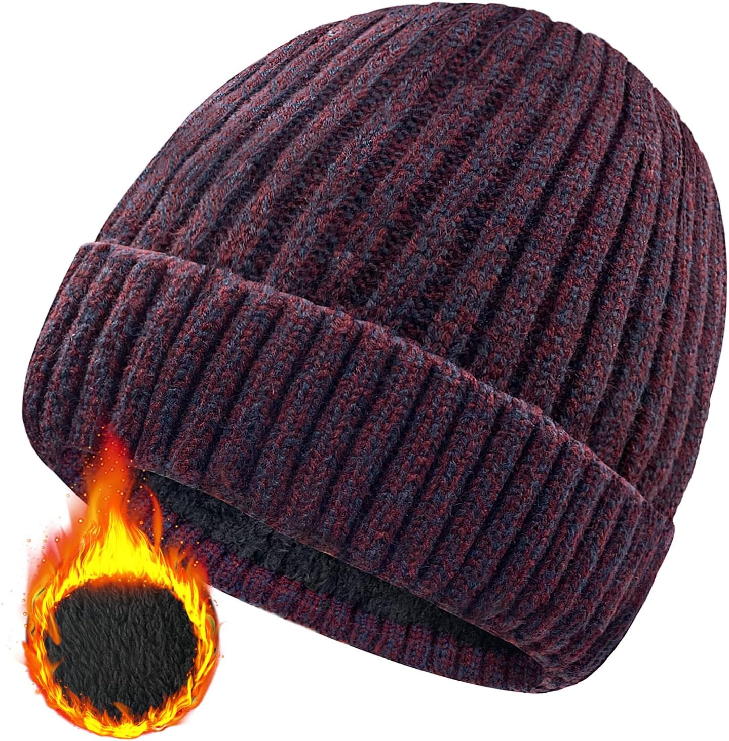 Wmcaps Beanie for Men, Stretchy Soft Cuffed Wooly Beanie with Thick Warm Lining, Unisex Classic Winter Hat, Gifts for Women/Men/Her/Him/Dad (Burgundy Red)