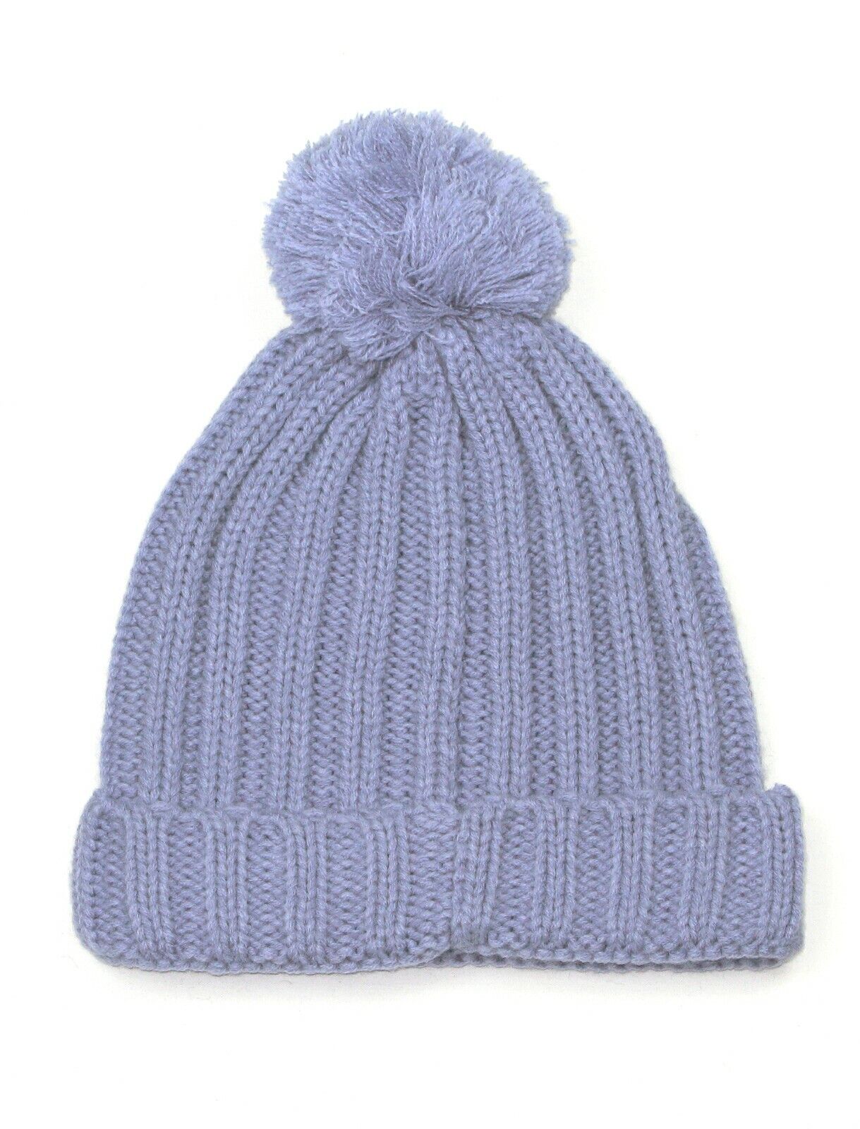 Mens Bobble Hat-Blue Pom Pom Beanie Rib Knitted Warm Winter Wooly Hat For Men