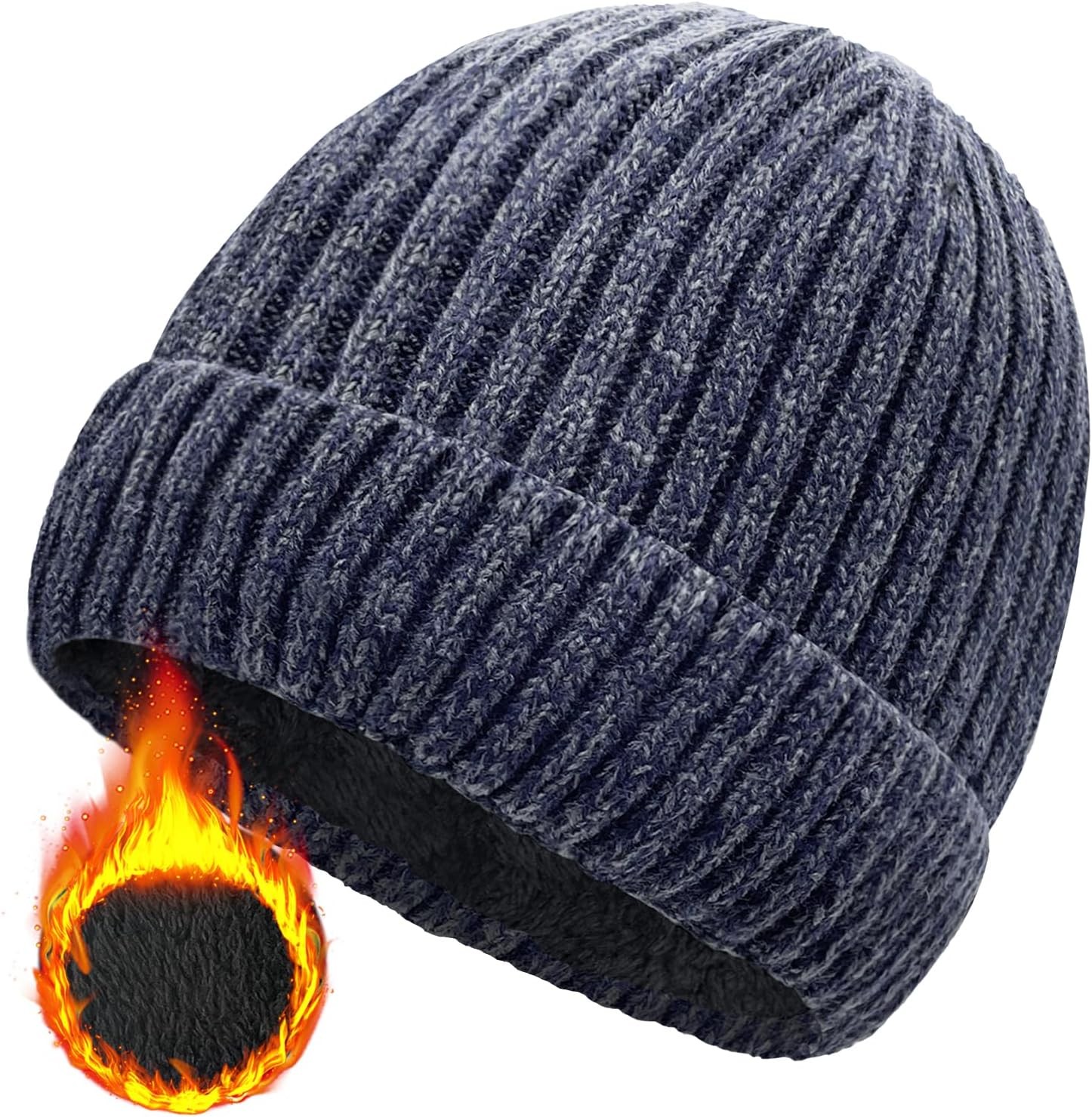 Wmcaps Beanie for Men, Unisex Classic Knit Beanie Winter Hat Stretchy Soft Cuffed Wooly Beanies with Thermal Thick Fleece Lining, Gifts for Men/Women/Her/Him/Dad(Navy Blue)