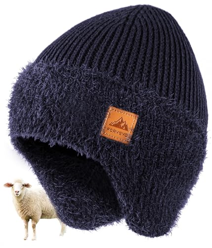 FORVEVO Beanie Hat Men Women, Winter Hat with Thick Warm Fleece Lining, Thermal Knit Wooly Beanie Hats with Earflaps for Winter Daily Life Outdoor Running Skiing, Navy
