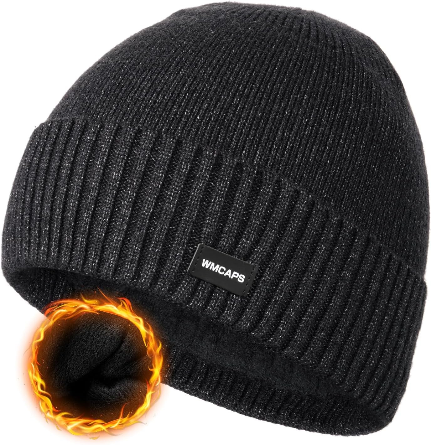 Wmcaps Beanie for Men, Unisex Classic Knit Beanie Winter Hat Stretchy Soft Cuffed Wooly Hat with Thermal Thick Fleece Lining, Gifts for Men/Women/Her/Him/Dad(Black)